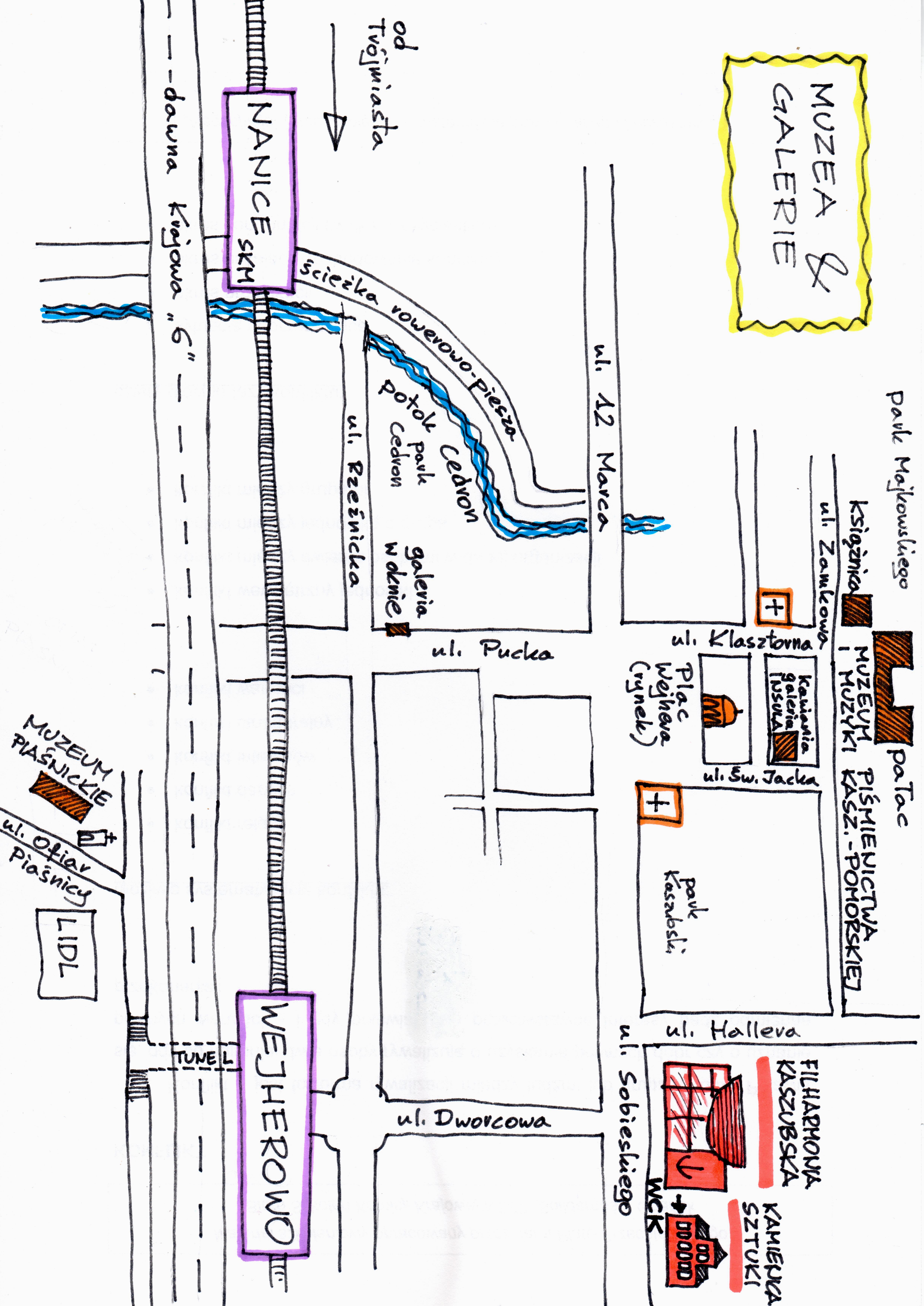 Dojechać do Wejherowa można najprościej kolejką SKM (zatrzymującą się na wszystkich przystankach) lub pociągiem Polregio (zatrzymującym się na głównych stacjach) – szczegółowe godziny można sprawdzić na www.skm.pkp.pl (gdańszczanom sugeruję bilet strefowy dobowy).